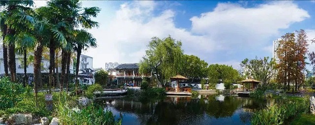 東安公園位于中山南二路811號,北臨內環高架中山南二路,是一座以竹為主的江南庭院式公園,也是周邊居民主要的健身活動場所。公園改造后,不少前來鍛煉的老人發現路面采用深水材料鋪平了,即使是下雨天也不怕打滑,對老年人十分友好。同時,基于海綿城市的設計理念,特別對整個水體的自凈能力做了提升,比如在水底增加了苦茶類等水生態比較好的一些植物,提升整個水體的自凈能力。