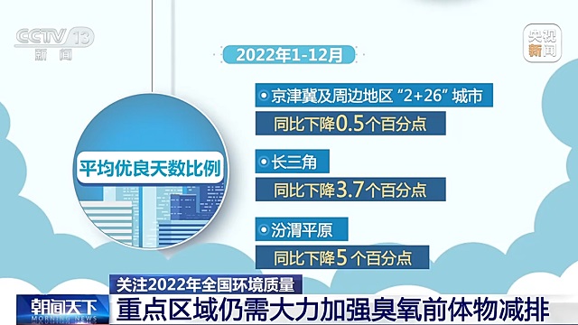 此外,生態(tài)環(huán)境部通報的2022年全國環(huán)境空氣質(zhì)量狀況還介紹了京津冀、長三角和汾渭平原三大重點區(qū)域的大氣環(huán)境質(zhì)量狀況。專家分析,目前這三個區(qū)域PM2.5和臭氧濃度普遍仍然較高,需繼續(xù)加強減排工作。