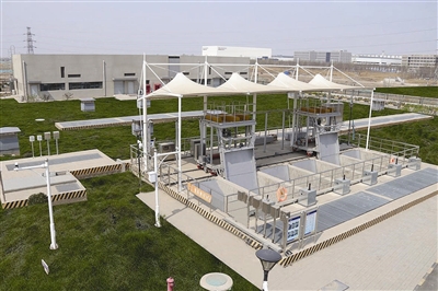 該項目是空港區域首個系統性海綿城市調蓄工程,集控制初期雨水徑流污染、削減洪峰流量和排放雨水三重功能于一身,總規劃收水范圍為航空產業區內343公頃,包含9條道路和2座調蓄池。兩座調蓄池占地面積約為10000平方米,道路雨水出水管道長度約為18480米,人行道透水鋪裝約為61000平方米,調蓄泵站峰值排放流量14.6立方米/秒。該項目于2020年11月開工,已順利完工驗收,計劃今年年內投入使用。