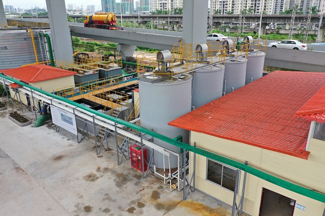 節(jié)約用地是本項(xiàng)目處理工藝的重要亮點(diǎn)。易新貴介紹說(shuō),天河區(qū)屬于中心城區(qū),土地資源緊缺,一體化設(shè)備高度集成,占地面積小,非常適合城市中的污水處理需求,“這里是高架橋旁,原來(lái)是用來(lái)停放城管功能用車(chē),用來(lái)做一體化污水處理廠,大大節(jié)約了用地成本,也避免了選址難題。”