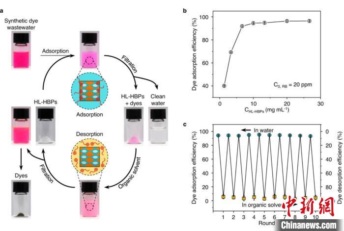 論文通訊作者王樹濤研究員介紹說,有機染料是一種常用的色彩添加劑,被廣泛應(yīng)用于工業(yè)、科研和日常生活的方方面面。有數(shù)據(jù)表明,全球有機染料的產(chǎn)量達到70萬噸/年,其中近10%—15%被排放到工業(yè)和家庭廢水中,已成為水污染的重要源頭,對生態(tài)環(huán)境和公眾健康構(gòu)成威脅。