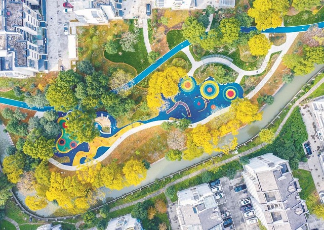 越城區(qū)快閣苑小區(qū)里的“海綿城市”
