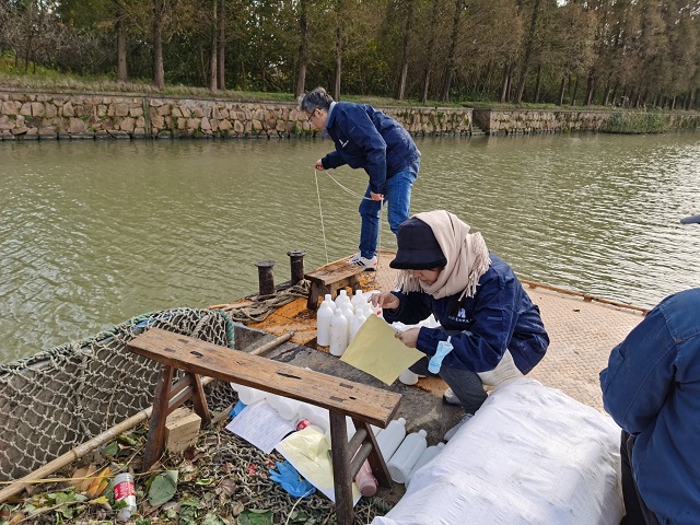 圖為嘉興生態(tài)環(huán)境局的局長(zhǎng)施曉松正在調(diào)研水環(huán)境質(zhì)量