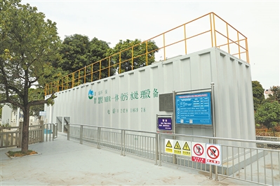 “MBBR”工藝采用生物活性高分子懸浮載體固定、誘導、篩選、馴化和富集適應污水水質(zhì)的特異性菌群,菌群依據(jù)降解速度和次序分級排列在懸浮載體上,實現(xiàn)污染物質(zhì)的高效去除。實際上,這種一體化處理設施相當于這個簡易的小型污水處理廠,記者在現(xiàn)場看到,處理后的污水清澈無異味,排放進村里的風水塘和旁邊河涌。