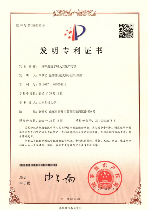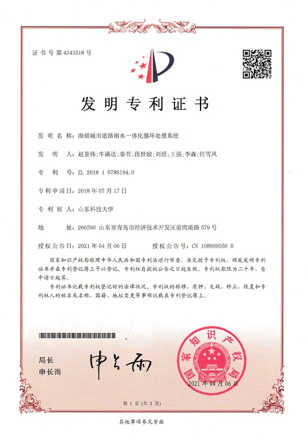 市政道路硬化面積的迅速擴(kuò)張已成為城市內(nèi)澇的主要致災(zāi)因素,在國(guó)家建設(shè)“源頭減排、蓄排結(jié)合、排澇除險(xiǎn)、超標(biāo)應(yīng)急”的城市防洪排澇體系的背景下,市政道路開始推行海綿化改造。但由于各路面結(jié)構(gòu)最優(yōu)滲排水設(shè)計(jì)不明確,未形成海綿城市道路雨水收集與利用系統(tǒng),導(dǎo)致海綿城市道路實(shí)際施工難以落地。我校趙景偉教授、秦哲副教授、單景松教授團(tuán)隊(duì)針對(duì)海綿城市道路的施工難題,圍繞海綿城市道路結(jié)構(gòu)與整體設(shè)計(jì),研發(fā)了一種新型高性能聚合物透水水泥混凝土,并創(chuàng)新了聚合物透水水泥混凝土施工工藝,最終形成了海綿城市透水路面鋪裝關(guān)鍵技術(shù)體系,并基于此開發(fā)了海綿城市道路自調(diào)節(jié)雨水收集與綜合利用系統(tǒng)成套關(guān)鍵技術(shù)。研究成果有力推進(jìn)了海綿城市道路的發(fā)展,提升了行業(yè)質(zhì)量水平。相關(guān)成果授權(quán)發(fā)明專利10項(xiàng),形成了海綿城市道路建設(shè)與模型試驗(yàn)專利群,相關(guān)成果已在青島、濟(jì)南、西安、石林等地得到廣泛應(yīng)用。(記者:任波)