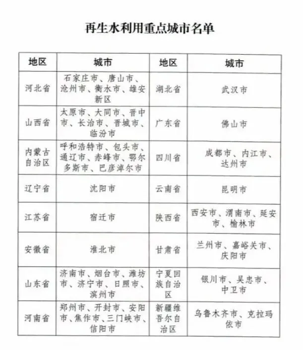近日,國家發展改革委辦公廳、住房城鄉建設部辦公廳和水利部辦公廳聯合印發了《關于印發再生水利用重點城市名單的通知》(發改辦環資〔2024〕601號),共50個城市入選。