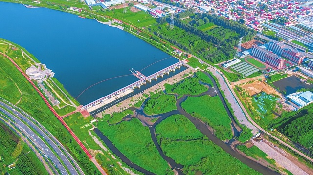 汾河治理三期工程與汾河百公里中游示范區交匯處。