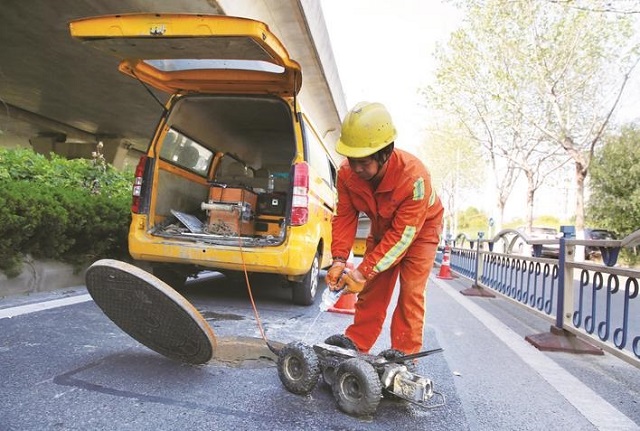 管道疏通工作結(jié)束后,一臺(tái)外觀酷似玩具汽車(chē)的CCTV檢測(cè)機(jī)器人被放入雨水管道,機(jī)器人沿管道爬行的同時(shí),管道內(nèi)部的實(shí)時(shí)高清畫(huà)面被傳輸?shù)揭慌缘谋O(jiān)視器上。技術(shù)人員對(duì)管道接口處有無(wú)裂縫,管內(nèi)淤積以及破損、滲漏、錯(cuò)位等結(jié)構(gòu)病害進(jìn)行排查判斷,制訂下一步的修復(fù)計(jì)劃。“我們已經(jīng)對(duì)全市500余公里的雨水管網(wǎng)進(jìn)行了清淤和檢測(cè),修復(fù)病害478處,修復(fù)管網(wǎng)長(zhǎng)度達(dá)1520米,”張哲夫說(shuō),“采用非開(kāi)挖修復(fù)的方式,減少了對(duì)市民出行的干擾,更是大大降低了維修成本,提升了地下管理的‘軟實(shí)力’。”