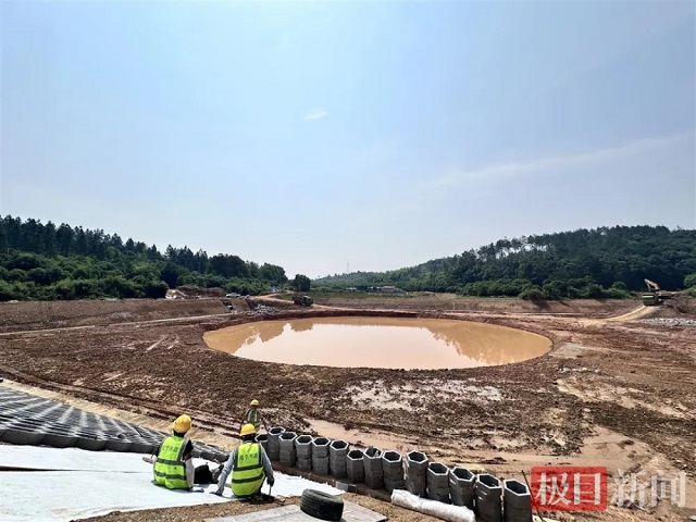 5月27日上午,楊下調蓄池建設現場的施工氛圍與天氣一樣火熱。在3號調蓄池建設現場,主體結構已完工,工人們正在進行護坡施工。極目新聞記者現場看到,該調蓄池位于一處丘陵地帶的低洼處,承接周邊大片山地、丘陵來水。調蓄池不僅能調蓄洪水,日常則可以作為灌溉水庫,為下游數百畝田地提供灌溉水源。