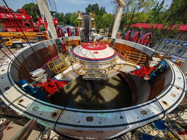 中鐵十一局自主研制的初雨調蓄豎井掘進機,則是向深處要空間,可大大減少工程項目對土地的需求,施工占地只需200平方米,核心挖掘區(qū)只是一個外徑16.3米的圓形區(qū)域。