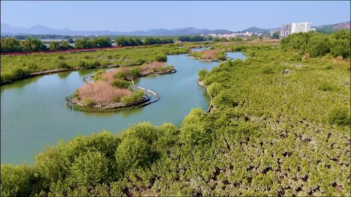 此外,生態優勢正轉化為發展優勢。在好招樓濕地公園,來自深圳的研學團隊正在觀察鷺鳥的棲息情況。“這里的生態太好了,孩子們能親眼看到紅樹林生態系統,比書本上生動多了?!睅ш犂蠋煴硎尽D壳?,“生態修復+濕地旅游+研學教育”的融合發展模式已初見成效,海龜灣旅游區成為國家3A級景區,相關研學產品入選省級特色名單。