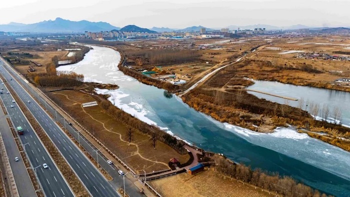 冬日里的洋河河道水清岸潔。