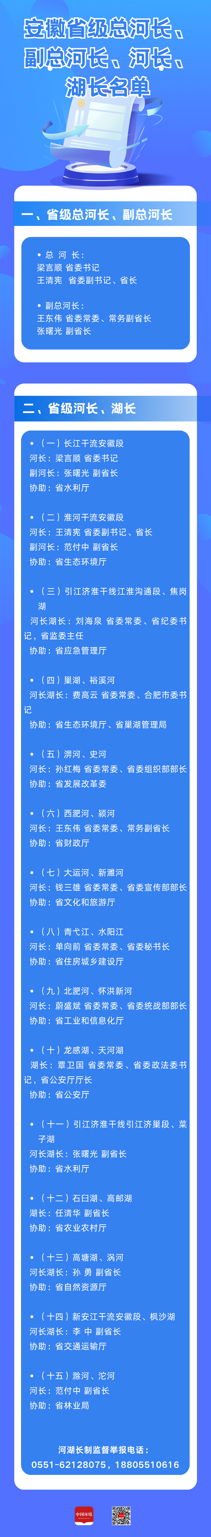 近日,安徽省人民政府官網(wǎng)發(fā)布《安徽省級(jí)總河長(zhǎng)、副總河長(zhǎng)、河長(zhǎng)、湖長(zhǎng)名單》,明確省級(jí)河湖長(zhǎng)責(zé)任分工,涵蓋長(zhǎng)江、淮河、巢湖等重點(diǎn)江河湖泊,構(gòu)建起高位統(tǒng)籌、分級(jí)負(fù)責(zé)、部門協(xié)同的河湖管護(hù)體系。