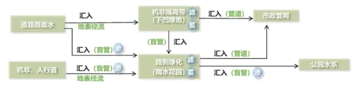 道路排水系統(tǒng)作為人工紐帶,是“四網(wǎng)協(xié)同”理念落地的重要載體。隨著海綿道路、行泄通道等設(shè)計(jì)理念的提出,道路排水系統(tǒng)突破了傳統(tǒng)排水通道的單一導(dǎo)排功能,成為集雨洪傳輸、徑流凈化、生態(tài)連通、資源利用于一體的復(fù)合性功能載體。一方面,其承接路網(wǎng)地表徑流,實(shí)現(xiàn)雨水從道路到管網(wǎng)、水網(wǎng)的有序?qū)牛行Ь徑夤芫W(wǎng)排水負(fù)荷,降低城市內(nèi)澇風(fēng)險(xiǎn);另一方面,道路排水系統(tǒng)與林網(wǎng)深度融合,在雨水徑流傳輸過程中同步完成污染削減,實(shí)現(xiàn)雨水自然凈化;此外,當(dāng)管網(wǎng)轉(zhuǎn)輸能力不足時(shí),道路排水系統(tǒng)作為行泄通道可承接管網(wǎng)溢流雨水,為多余雨水提供應(yīng)急出路,同時(shí)結(jié)合調(diào)蓄設(shè)施實(shí)現(xiàn)雨水臨時(shí)儲(chǔ)存,為雨水資源回收利用創(chuàng)造條件。因此,通過優(yōu)化道路排水系統(tǒng)設(shè)計(jì),實(shí)現(xiàn)路網(wǎng)、管網(wǎng)、水網(wǎng)、林網(wǎng)的有效銜接,可解決城市生態(tài)空間的連通性斷裂問題。